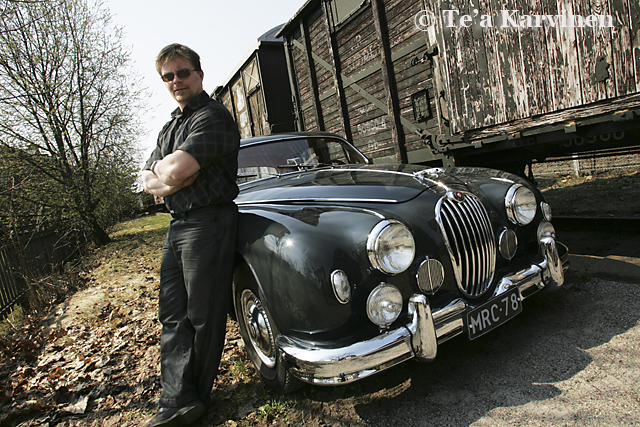 IS 20060505 HYVINKƒƒ CURLING PELAAJA WILLE MƒKELƒN AUTO JAGUAR MARK I, VUOSIMALLI 1956. BY TEA KARVINEN